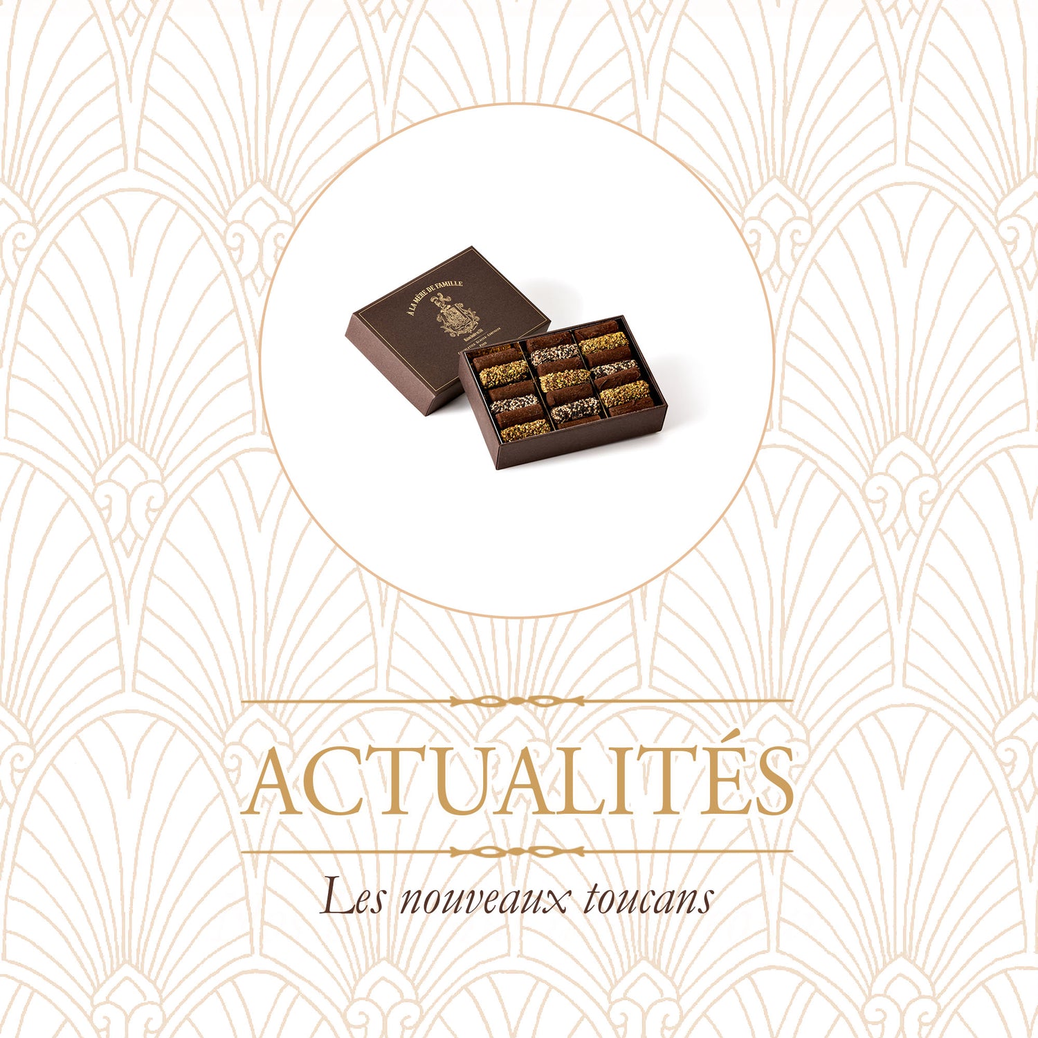 Notre traditionnel toucan au praliné feuilleté recouvert de poudre de cacao est désormais accompagné par deux nouvelles recettes extrêmement savoureuses :