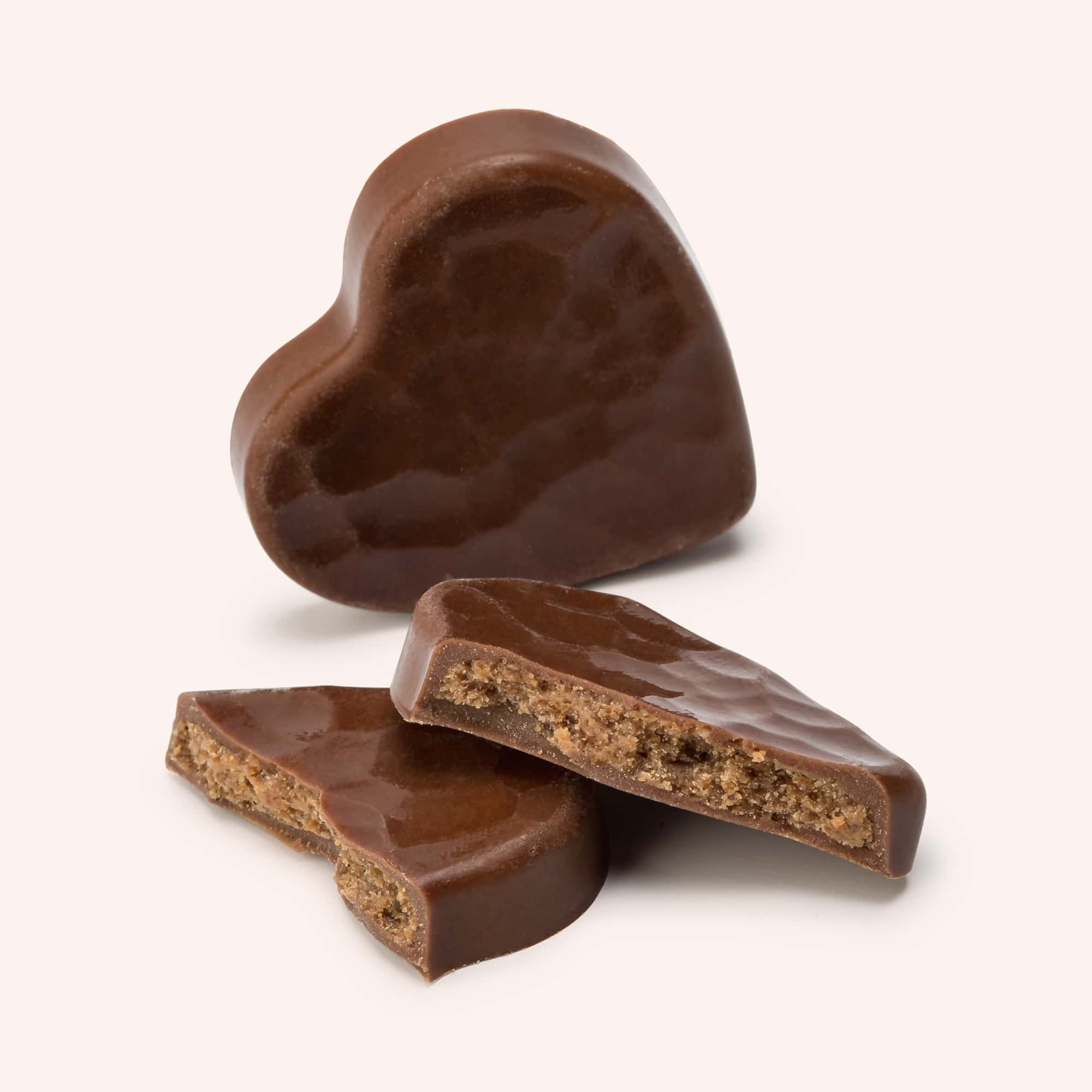 Quoi de mieux pour dire son amour à sa maman que de lui offrir un délicieux cœur en chocolat gros comme ça ? Disponible en chocolat noir et chocolat au lait, ce grand moulage en forme de cœur, orné d’un délicat décor de trèfles à quatre cœurs, cache un assortiment de chocolats au praliné amande noisette (l’une des recettes iconiques de la Maison), et de noisettes dragéifiées, enrobées de chocolat au lait et de chocolat noir. Dans ce produit festif et tendre, parfait pour des cadeaux plein d’amour, on sent poindre la délicatesse du caramel associée aux arômes inimitables de notre couverture maison, confectionnée à partir d’un assemblage unique de fèves venues de différentes régions du monde.