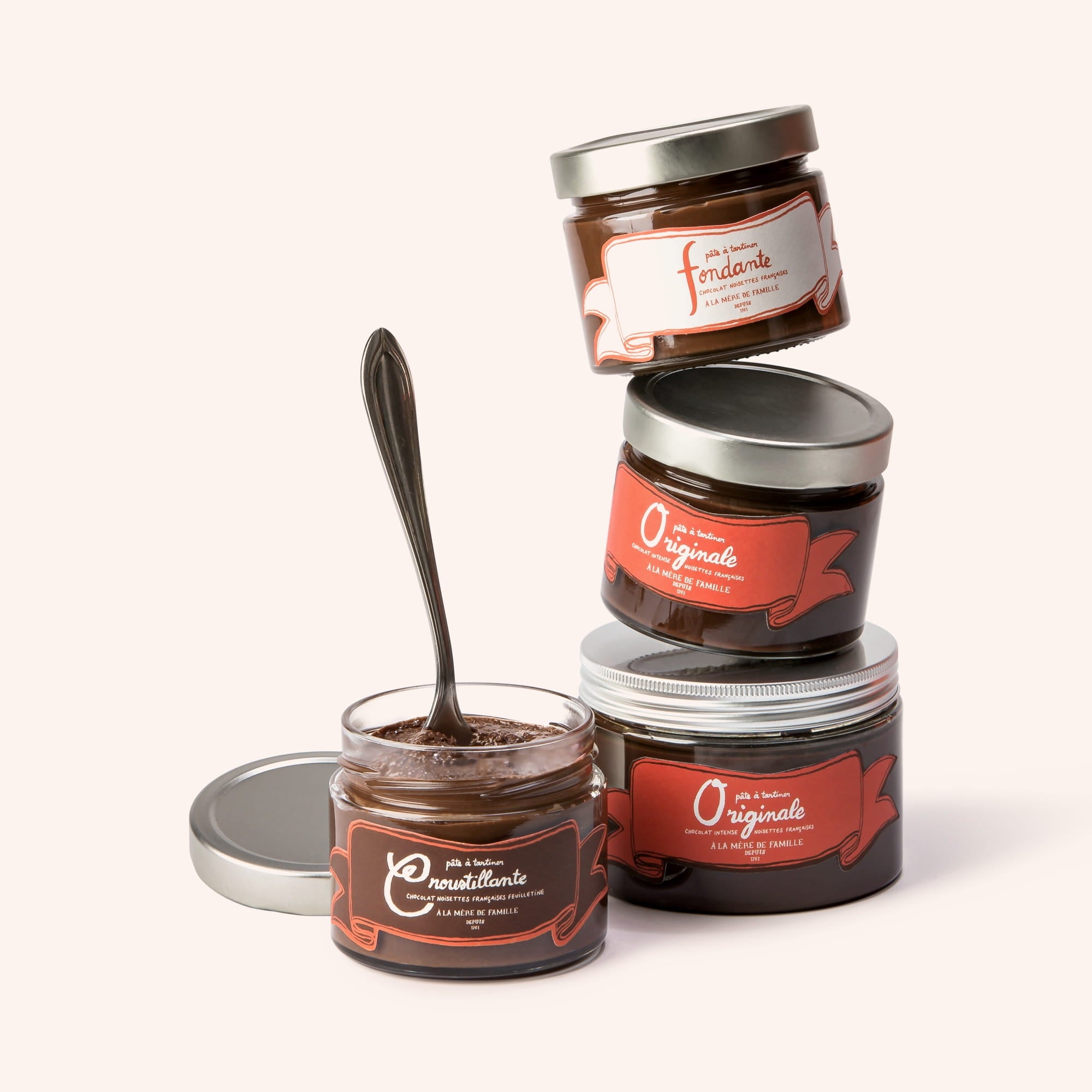 Depuis 2012, en tant que chocolatier, À la Mère de Famille a décidé d’ajouter à ses créations ces délices incontournables… avec une  recette artisanale  fabriquée à partir d’ingrédients nobles, triés sur le volet, pour le plus grand bonheur du gourmand qui sommeille en chacun de nous : noisettes françaises, cacao fin issu de plantations sélectionnées avec exigence et rigueur, de vanille et bien sûr,  sans huile de palme.