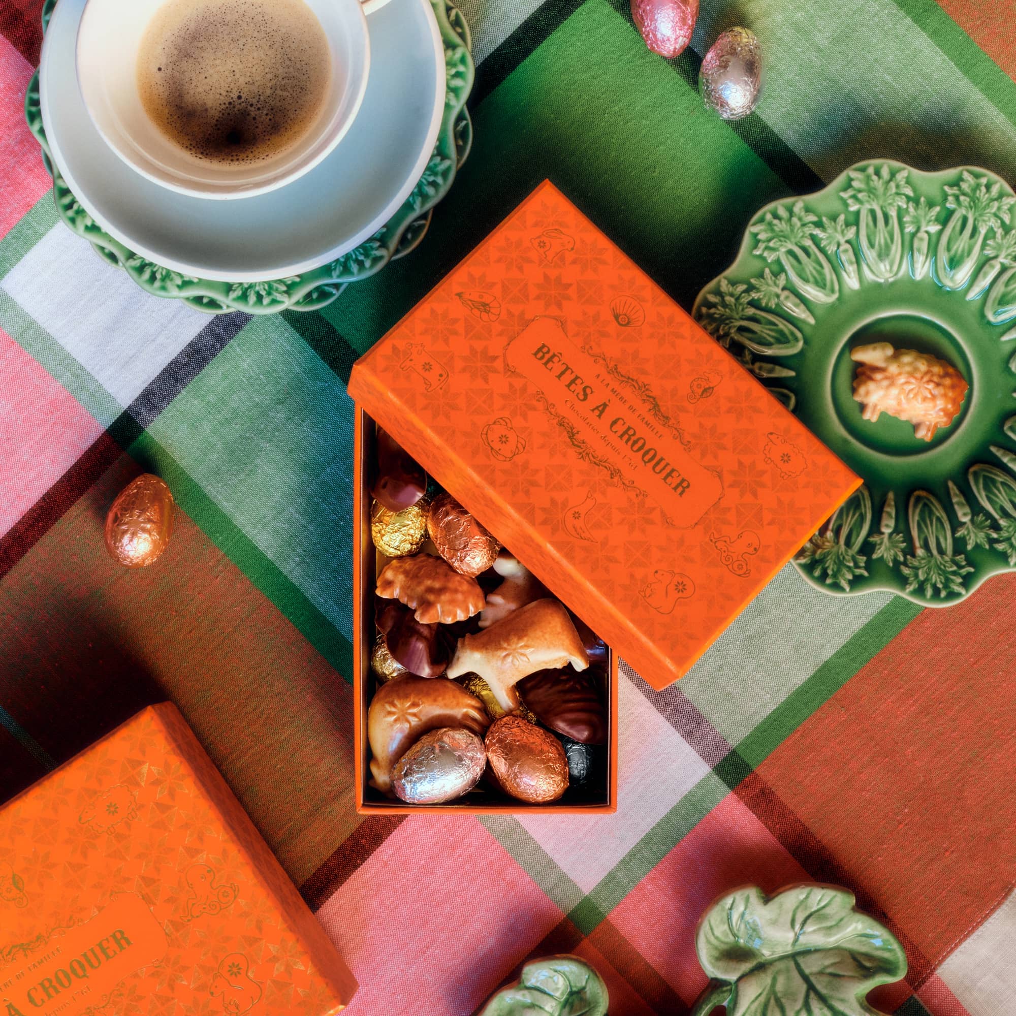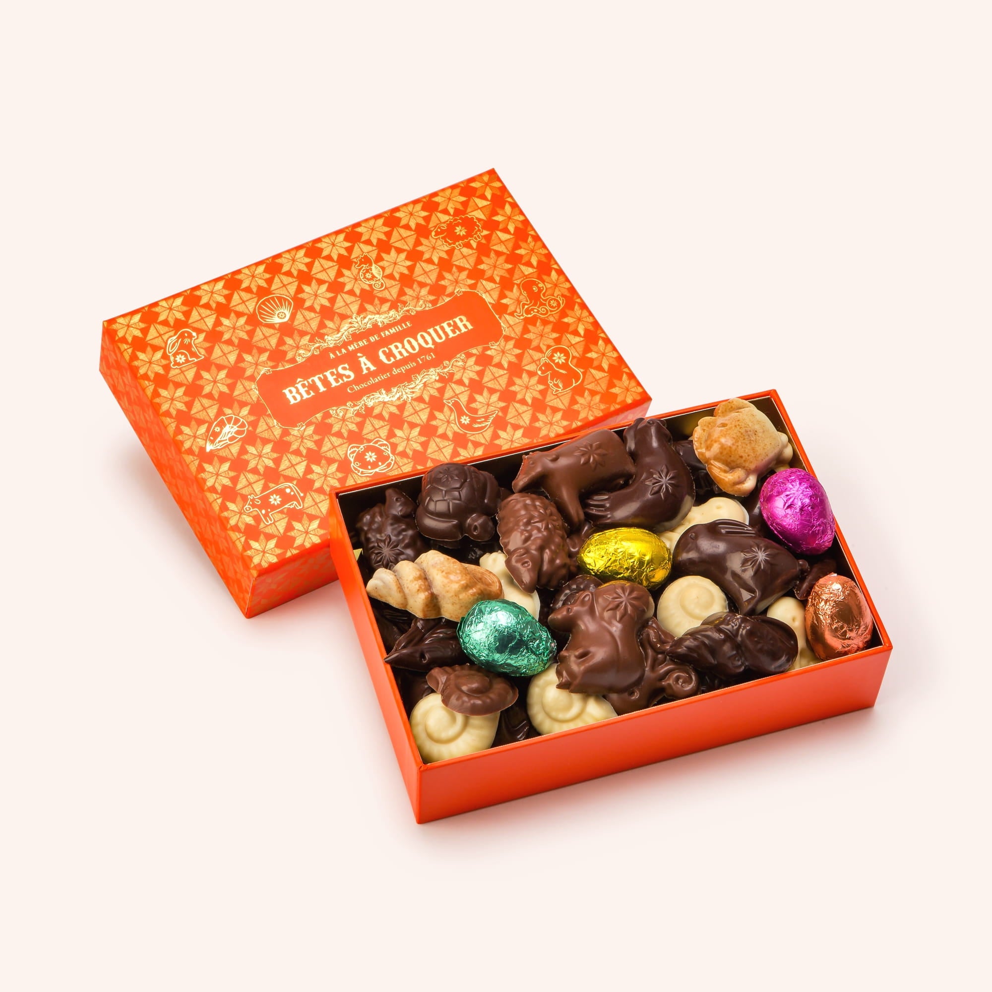 Difficile de choisir entre tout ce qui vous tente ? Ne le faites pas en optant sur notre chocolaterie en ligne pour un ballotin à offrir(ou vous offrir), et dégustez un assortiment de nos différentes recettes au chocolat, présenté dans une jolie boîte. Nous vous conseillons par exemple notre coffret chocolat de spécialités, où toucans croustillants côtoient palets fondants, orangettes vitaminées, dolfentins craquants enrobés de miel, et bien d’autres douceurs. Vous êtes plutôt un fondu de praliné ? Notre coffret qui réunit toutes nos recettes Notre coffret qui réunit toutes nos recettes de pralinés (ou de chocolat praline comme certains les appellent parfois) fera votre bonheur !