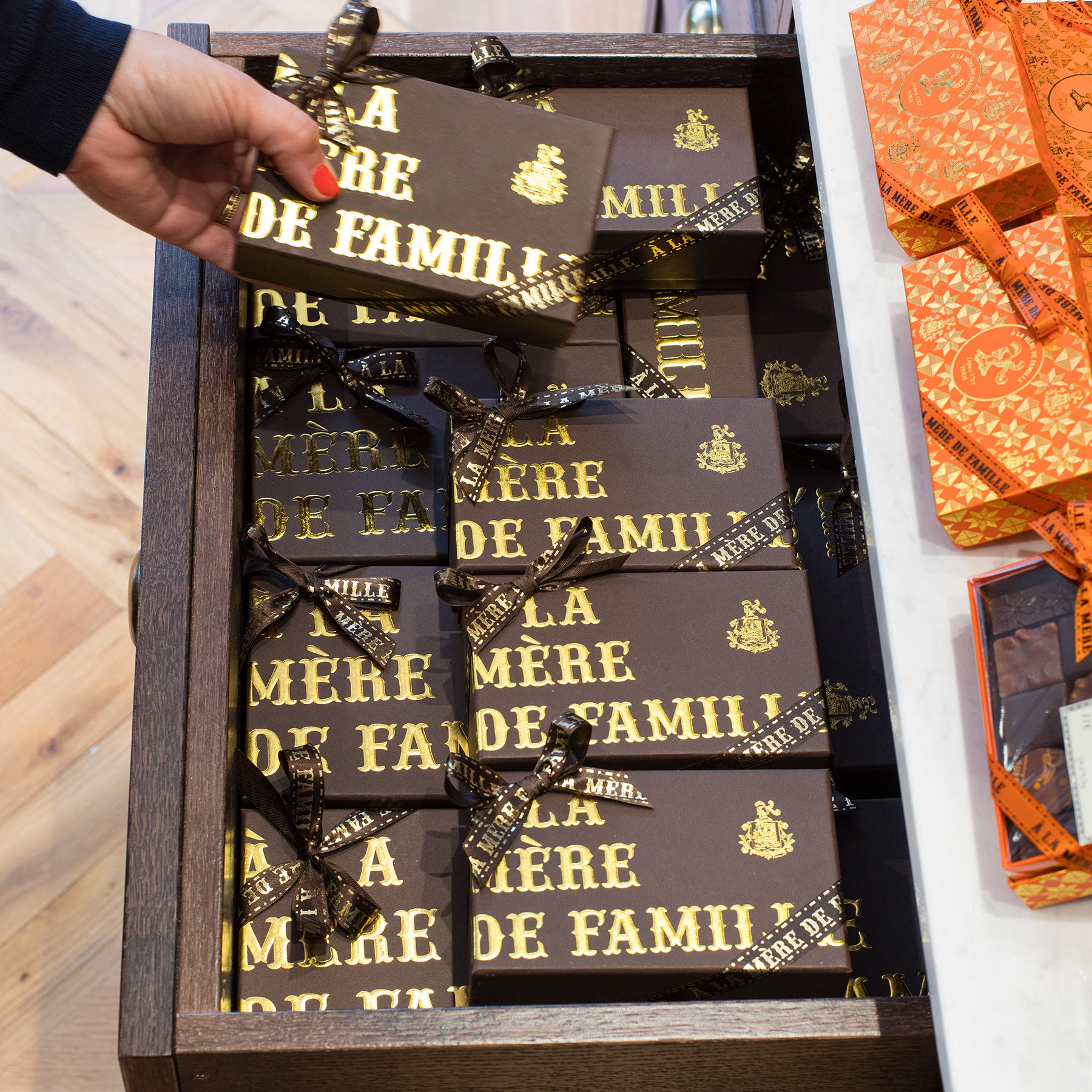À la Mère de Famille préserve et enrichit depuis 1761 un patrimoine gourmand inestimable. Chocolats (ganaches et pralinés), truffes, confiseries, spécialités au chocolat et autres délices sucrés accueillent les amateurs de douceurs dans nos boutiques parisiennes, où nos équipes se font un plaisir de les conseiller. Mais pas question pour autant d’abandonner les gourmands qui vivent sous d’autres latitudes que la Ville Lumière !
